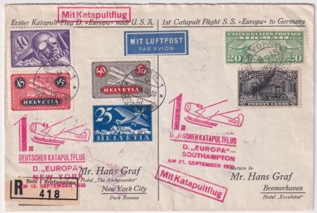 Switzerland / US 1930 Europa Catapult Registered Cover