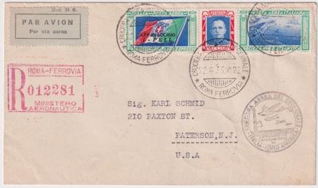 Italy 1933 (Jun 22) VF Balbo Flight Cover with C48-C49, Rome – New York. Registered cover sent from Rome to NY, addressed to Paterson NJ..