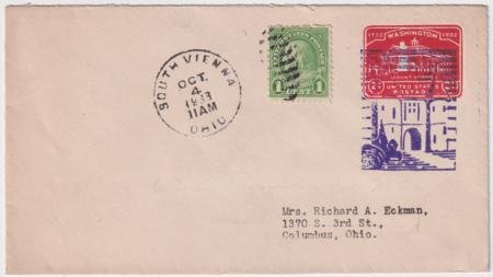US South Vienna,Ohio1933 (Oct 4) Cover 632, and U525. Single strike of Church fancy cancel 1093 in purple. Only listed as First Class