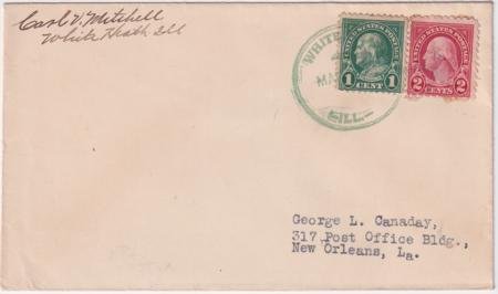 US White Heath, Illinois 1930’s Cover with Scott 632 and634. Single strike of Circular White Heath cancel 1234 and single strike of solid star fancy cancel, 1236, both in green.