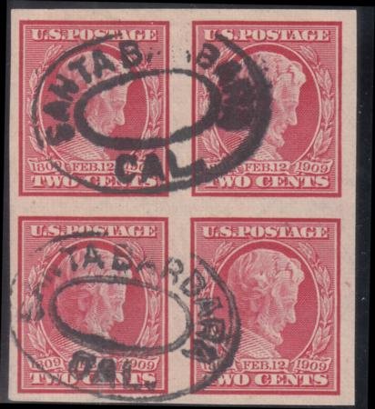 US 368 Early Commemoratives Used VF Block Santa Barbara, Cal. Cancel