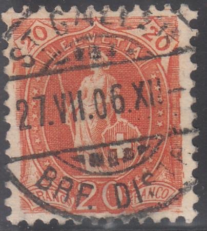 Switzerland 105 (SBK 86A) Used XF 11 1/2 x 1 WMK, White Paper S-O-N Cancel