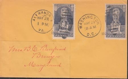 US 1926 Scott 628(2) FDC Combo, DC + Alexandria. VA Unoffical FDC Unique! cv – Backstamped Washington May 29, 1926