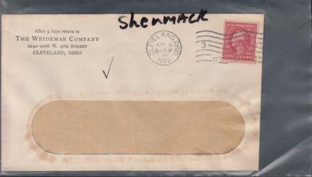 US 384 FDCS Shermack VF or F-VF Window Env, Somewhat Trimmed Right Cleveland Apr.5, 1912
