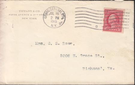 US 409 FDCS Shermack III NY July 16, 1915 Tiffany + Co. VF Stamp + Cover