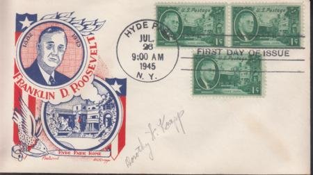 • US 930 FDC 1c FDR Fleetwood/Knapp Printed Cachet Unaddressed. FDC Autographed By Dorothy Knapp. Ex Wally Knapp, Unique!