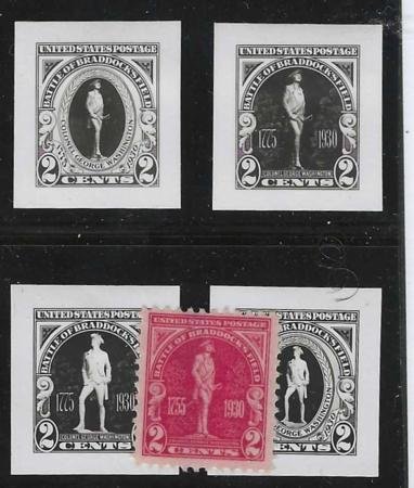 US 688 Essays and Proofs XF Mint Braddock’s Field + 4 Photo Essays
