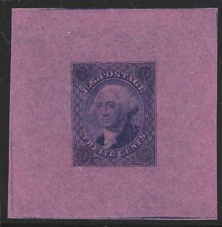 US 69E3P Essays and Proofs XF Mint Die 1 in Blue on Thin Pink Wave 50×50 mm – Rare + Lovely cv $750