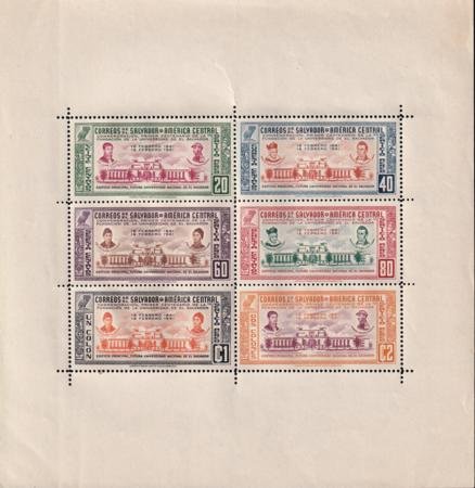 Salvador C83a VF NH S/S Of 6 Perf 11 1/2 Early Owl Few Salvage Wrinkles Normal Due To Large Size