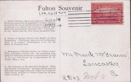 US 372 FDC 9/25/1920 Lancaster, PA Double Fold-Out Souvenir PPC Honoring Fulton. VF Except For Crease In 2nd Part of Card. Not Affect In FD Cancelled Part. cv $900