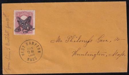 US 65 Early Classics Fancy Cancel VF Cover West Hampton, Mass Herst $209 Union In Star S-O-N Pristine Cover