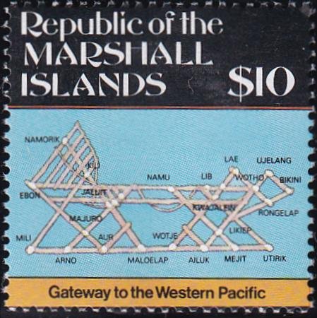 US 109 Trust Territories Marshall Islands NH VF $10 Def. Stick Chart (’87) (Image for reference only)