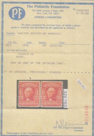 US 322 Bureau & Regular Issues Mint LH F-VF Single, PF Cert For Left Stomp In Pair Very Fresh! cv $7000