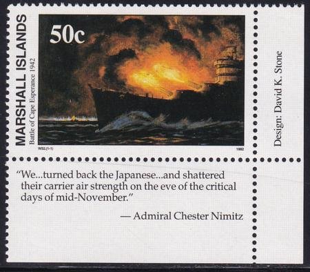 US 325(W52) Trust Territories Marshall Islands WWII Anniversaries NH VF Battle Of Cape Esperance (Image for reference only)