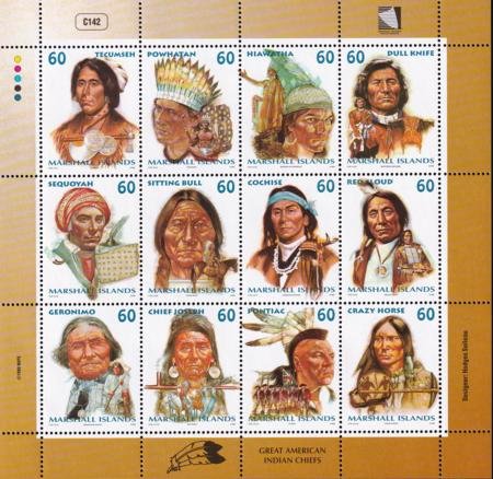 US 699 Trust Territories Marshall Islands NH VF American Indian Chiefs M/S (Image for reference only)