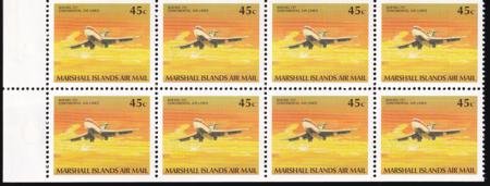 US C25a Trust Territories Marshall Islands Airmail NH VF Aircraft (1989) 45 Cent Booklet Pane (Image for reference only)
