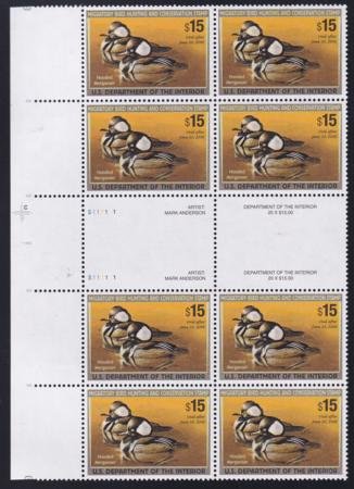 US RW72 Federal Duck Stamps NH VF Left Double Plate Block W/Horizontal Gutter