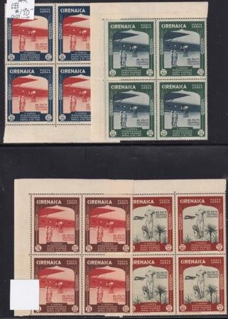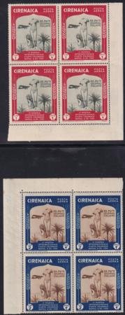 • Cyrenica C24-9 Mint NH F-VF Corner Blocks, Slightly Darker Gum, Toning Spot On Edge Of Salvage Only