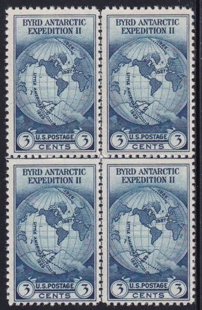 US 753 3¢ Byrd Farley Mint Positions No Gum VF Center Line Or Cross Gutter Block (Image for reference only)