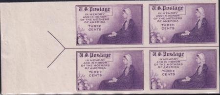 US 754 3¢ Mother’s Day Farley Mint Positions No Gum VF Left Or Right Arrow Block