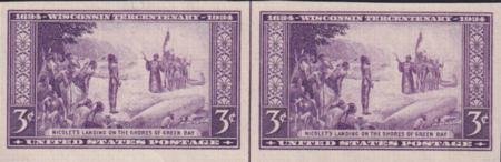 US 755 3¢ Wisconsin Farley Mint Positions No Gum VF Horizontal Pair Vert. Ln. (Image for reference only)