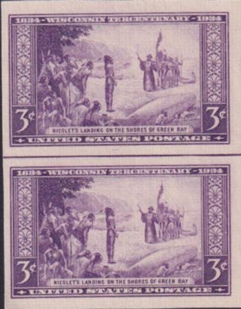 US 755 3¢ Wisconsin Farley Mint Positions No Gum VF Vert. Pair Horiz. Ln.
