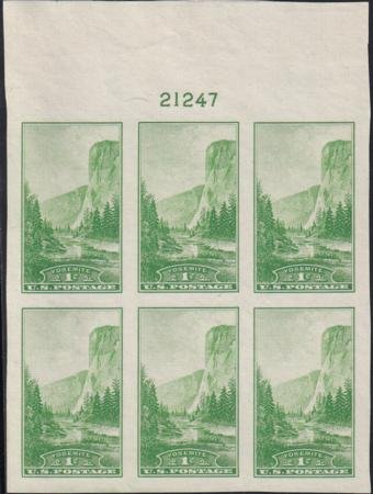 US 756 1¢ Yosemite Farley Mint Positions No Gum VF Plate Block