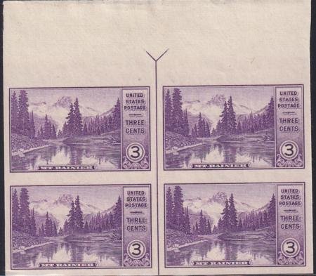 US 758 3¢ Mt. Rainier Farley Mint Positions No Gum VF Top Or Bot. Arrow Block
