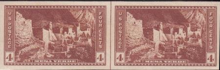 US 759 4¢ Mesa Verde Farley Mint Positions No Gum VF Horizontal Pair Vert. Ln. (Image for reference only)