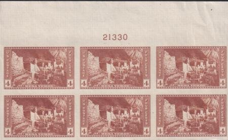 US 759 4¢ Mesa Verde Farley Mint Positions No Gum VF Plate Block