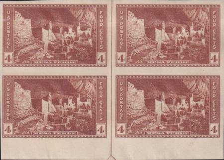 US 759 4¢ Mesa Verde Farley Mint Positions No Gum VF Top Or Bot. Arrow Block (Image for reference only)