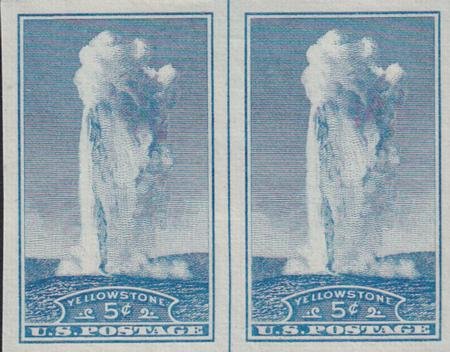 US 760 5¢ Yellowstone Farley Mint Positions No Gum VF Horiz. Pair Vert. Ln.