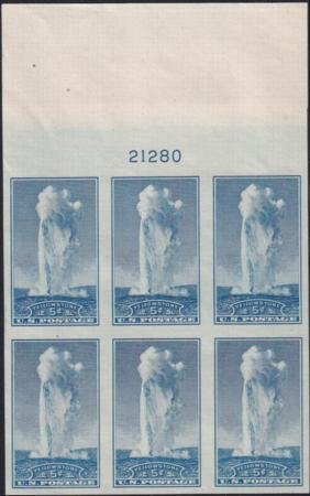 US 760 5¢ Yellowstone Farley Mint Positions No Gum VF Plate Block