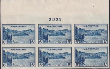 US 761 6¢ Crater Lake Farley Mint Positions No Gum VF Plate Block