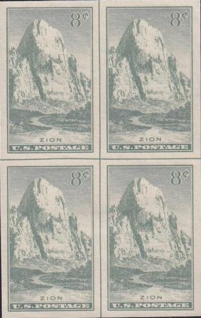 US 763 8¢ Zion Farley Mint Positions No Gum VF Center Line OR Cross Gutter Block (Image for reference only)