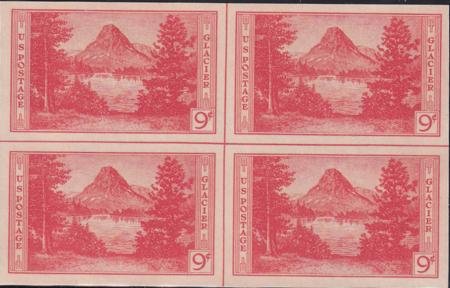 US 764 9¢ Glacier Farley Mint Positions No Gum VF Center Line Or Cross Gutter Block (Image for reference only)