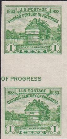 US 766a 1¢ Chicago S/S Farley Mint Positions No Gum VF Vert. Pair Horizontal Ln. (Image for reference only)