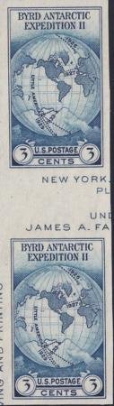 US 768a 3¢ Byrd S/S Farley Mint Positions No Gum VF Vert. Pair Horiz. Line