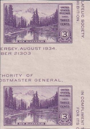 US 770a 3¢ Mt. Rainer S/S Farley Mint Positions No Gum VF Horizontal Pair Vert. Line (Image for reference only)