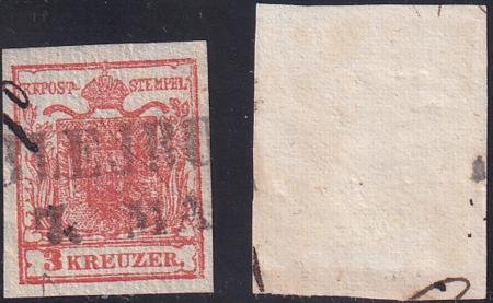 Austria 3a Used VF+ Strongly Ribbed Paper, Straight Line Plus Partial Pen Cancel, Piece It Was Soaked From Accompanies
