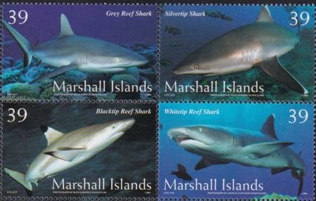 US 883 Trust Territories Marshall Islands NH VF Shark Block Of 4 (Image for reference only)