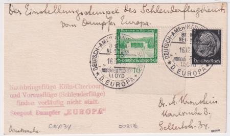 Germany 1936 Catapult Flight Card, Europa, Signed by Helms