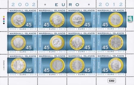 US 1036 Trust Territories Marshall Islands NH VF 10th Anniversary Euro Sheet