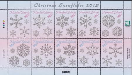 US 1127 Trust Territories Marshall Islands NH VFChristmas Snowflakes Sheet Of 10