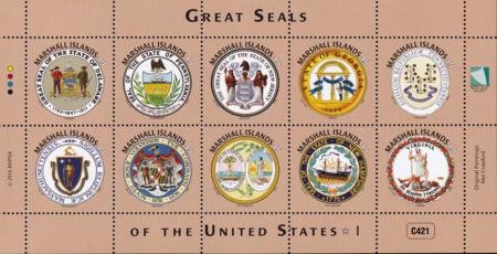 US 1134 Trust Territories Marshall Islands NH VF Great Seals Of 50 States Sheet 1; DE, etc