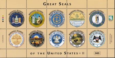 US 1135 Trust Territories Marshall Islands NH VF Great Seals Of 50 States Sheet 2; NY, etc (Image for reference only)