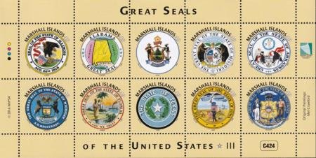 US 1136 Trust Territories Marshall Islands NH VF Great Seals Of 50 States Sheet 3; IL, etc (Image for reference only)