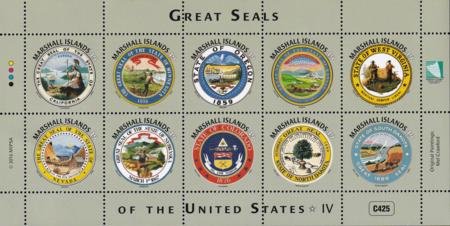 US 1137 Trust Territories Marshall Islands NH VF Great Seals Of 50 States Sheet 4; CA, etc (Image for reference only)