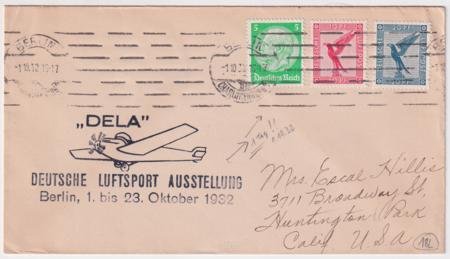 • Germany 1932 "Dela" Flight Cover to Huntington Park, CA