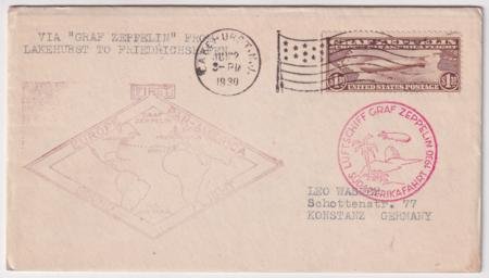 US 1930 (Jun 2) C14 on Zeppelin South America Flight Cover with all proper postmarks, Friedrichshafen backstamped.
